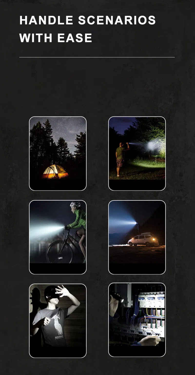 The flashlight has 5 modes: High, Medium, Low, Strobe, and SOS for emergency situations.