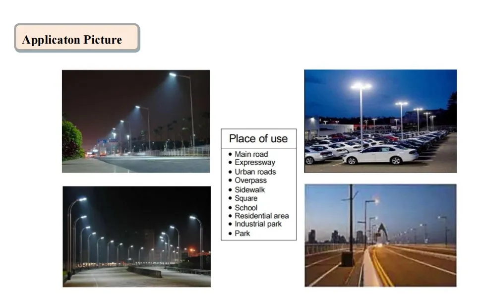 They are ideal for arterial roads, highways, elevated roads, bridges, sidewalks, squares, schools, residential areas, and industrial parks.